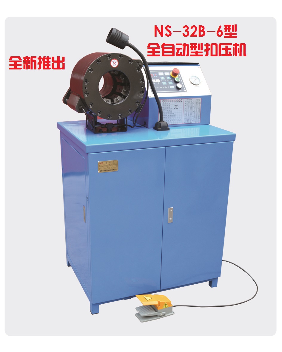 NS-32B-6新型微電腦版扣壓機(jī) 簡介: NS-32B-6型扣壓機(jī)在原有的機(jī)型基礎(chǔ)上,通過新型熱處理工藝及優(yōu)質(zhì)密封件,液壓系統(tǒng)中 選用臺灣原裝螺紋插裝閥,液壓管路簡潔明了,配備大排量柱塞泵及高效電機(jī),使得該機(jī)扣壓速度 大大提升,扣壓力增大,加大模具的收擴(kuò)量(達(dá)到34mm),解決了用戶的原有彎頭不容易通過的 問題,配備全新微電腦控制系統(tǒng),扣壓數(shù)據(jù)可以保存,使得用戶操作起來方便快捷, 張口量任意調(diào)節(jié),極大的提高了扣壓總成效率,該機(jī)型獲得了用戶的一致好評! 魅力四射的耐斯技術(shù)員工,用百分百的熱情為用戶精心打造更加完美的扣壓機(jī)。